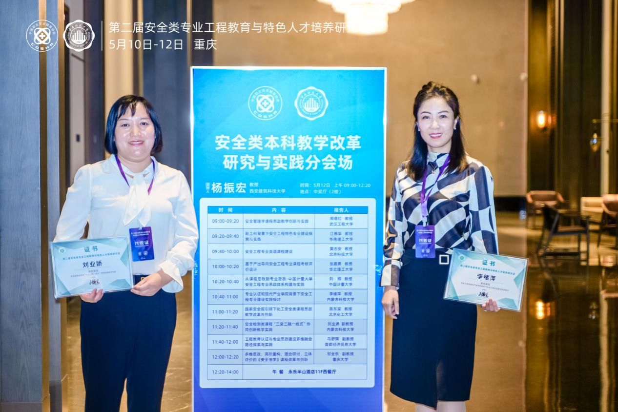 2024年5月10日-12日,第二届安全类专业工程教育与特色人才培养研讨会在重庆召开,太阳集团tyc539教师李绪萍、刘业娇、陈景序、任玉辉、张靖参加了会议,其中李绪萍教授和刘业娇副教授发表了大会报告。