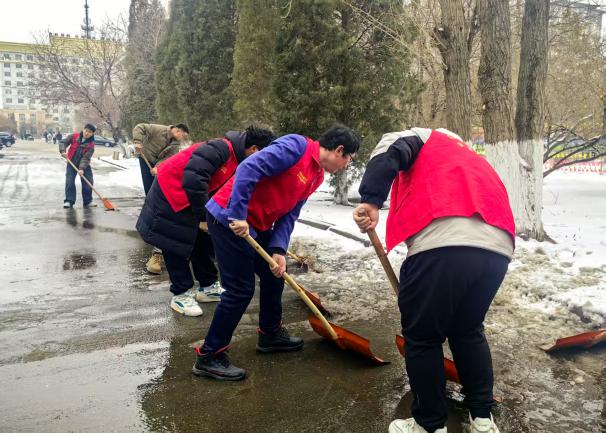 2025年3月4日,太阳集团tyc539组织教师、学生党员、学生干部开展清扫冰雪志愿服务活动。