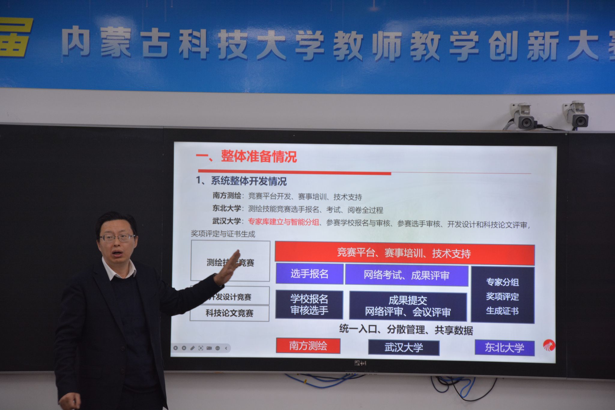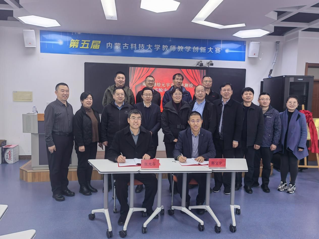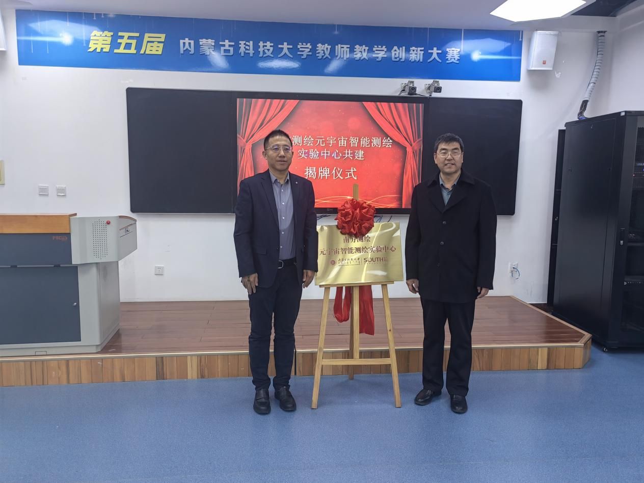 测教委副主任委员、南方测绘集团副总裁郭宝宇就企业支持赛事的相关工作进行了汇报。现场还举办了我校与南方测绘元宇宙智能测绘实验中心共建揭牌仪式。