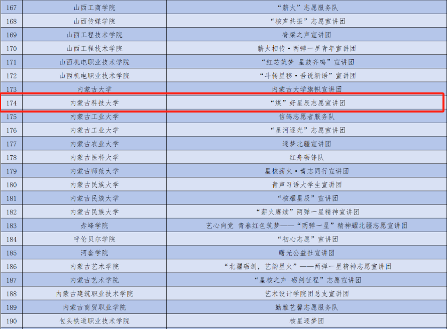 为深入学习宣传贯彻习近平新时代中国特色社会主义思想,全面贯彻党的二十大和二十届二中、三中全会精神,引导新时代广大青年学生坚定爱国报国信念,大力弘扬与传承“两弹一星”精神,激发广大青年投身强核强国事业的热情,团中央青年志愿者行动指导中心与中国核工业集团有限公司联合发布了《关于遴选2025年全国大学生“两弹一星”精神志愿宣讲团的公告》。活动得到了各高校青年志愿服务团队的广泛关注和积极参与,1123所高校的5680支青年志愿服务团队提交了申报材料。主办单位对所有材料进行了认真审阅,最终遴选出1500支“两弹一星”精神志愿宣讲服务团队,同时遴选16所“两弹一星”精神志愿宣讲重点联系高校。我校太阳集团tyc539“煤”好星辰志愿宣讲团成功入选。
