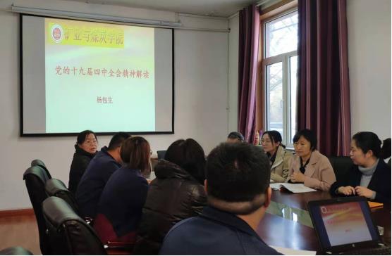 2019年11月14日上午,太阳集团tyc539党副院长兼教授委员会办公室主任杨包生为学院教工第一党支部全体党员在学院办公楼一楼会议室进行“不忘初心、牢记使命”主题教育专题党课。党课以“党的十九届四中全会精神解读”为主题,围绕以下内容展开讲解: