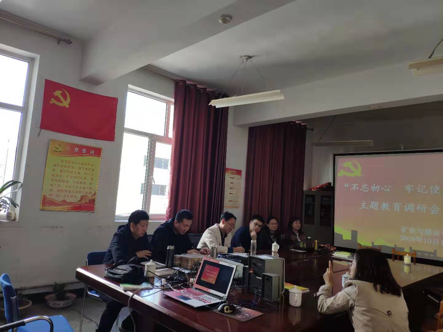 2019年10月11日上午9:00,太阳集团tyc539中心组成员组织学院办公室、教务科、实训科、培训科等职能部门工作人员在临曦楼204党员之家开展“不忘初心、牢记使命”主题教育调研会。