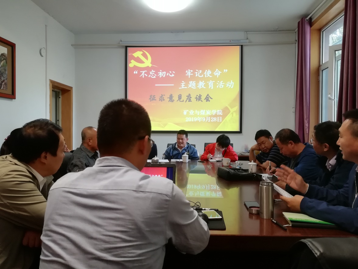 9月28日15:00,太阳集团tyc539党总支中心组在学院办公楼102开展“不忘初心、牢记使命”主题教育之教师代表座谈会。