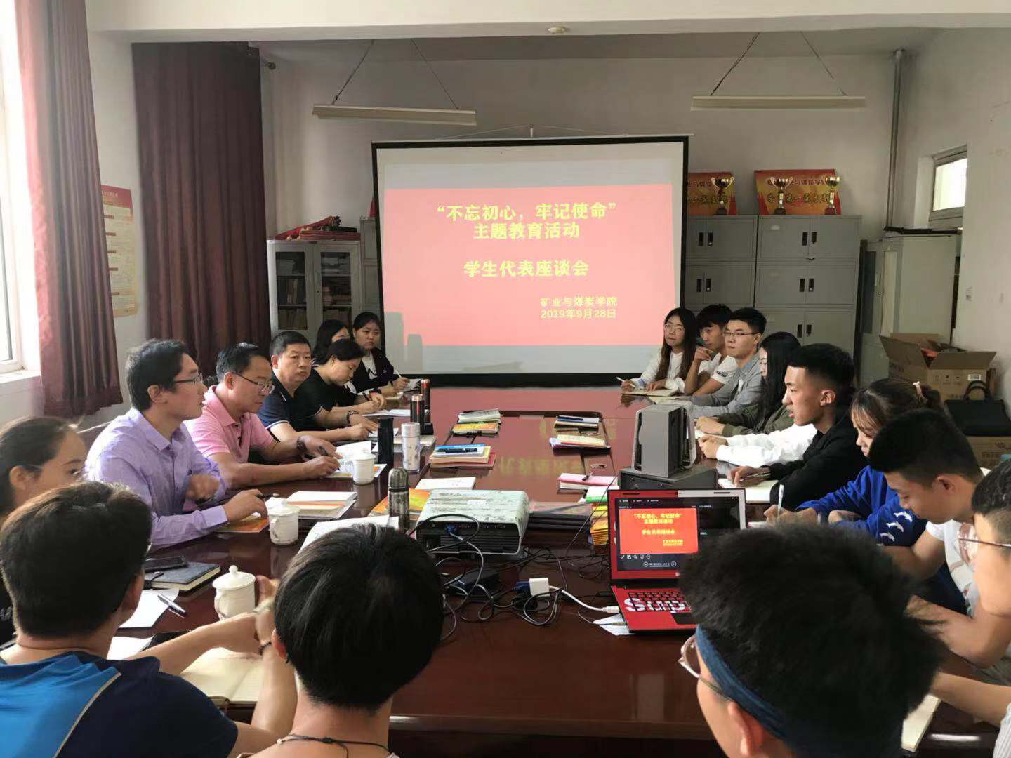 9月28日15:00,太阳集团tyc539党总支中心组在临曦楼204党员之家开展“不忘初心 牢记使命”主题教育之学生座谈会。