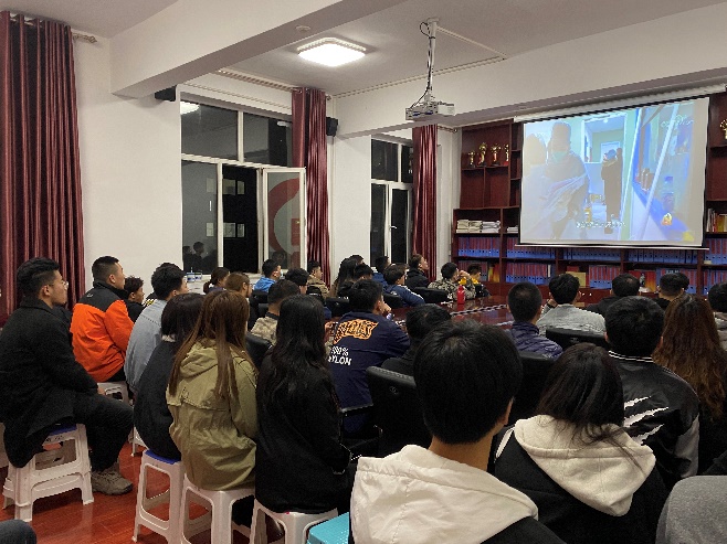 2021年3月24日晚上19:50,学院在临曦楼二楼党员之家组织学生党员和入党积极分子利用钉钉平台,采用现场集中学习和线上分散学习的方式观看《榜样5》专题节目。