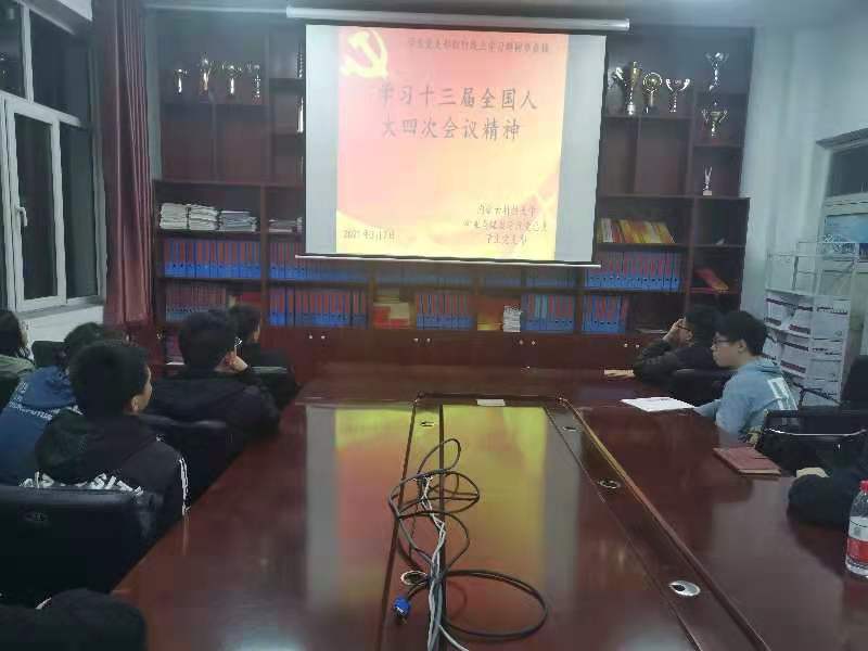 为增强“四个意识”,坚定“四个自信”,做到“两个维护”,同心协力,担当尽责,朝着实现中华民族伟大复兴的中国梦奋勇前进。太阳集团tyc539党总支于2021年3月7日晚上19:00,在临曦楼党员之家线上线下同步开展专题理论学习活动。本次学习内容是:集中学习十三届全国人大四次会议精神。