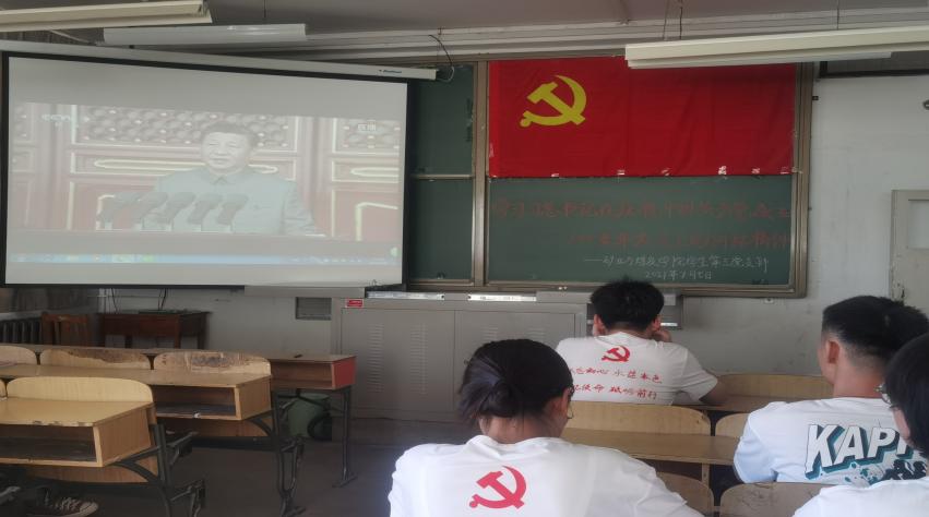 2021年7月5日晚19:00,太阳集团tyc539学生第三党支部在临曦楼208教室开展党员集中学习,本次学习的主题是:学习习近平总书记在庆祝中国共产党成立100周年大会上的讲话精神。