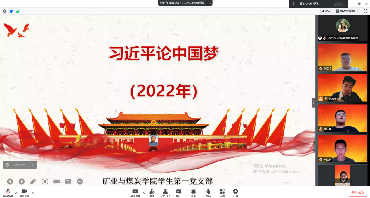 转正大会开始前,学生第一党支部开展“第一议题”专题学习,学习《习近平论中国梦》,通过学习习近平总书记2022年关于中国梦的重要论述,汇聚实现中国梦的青春力量。