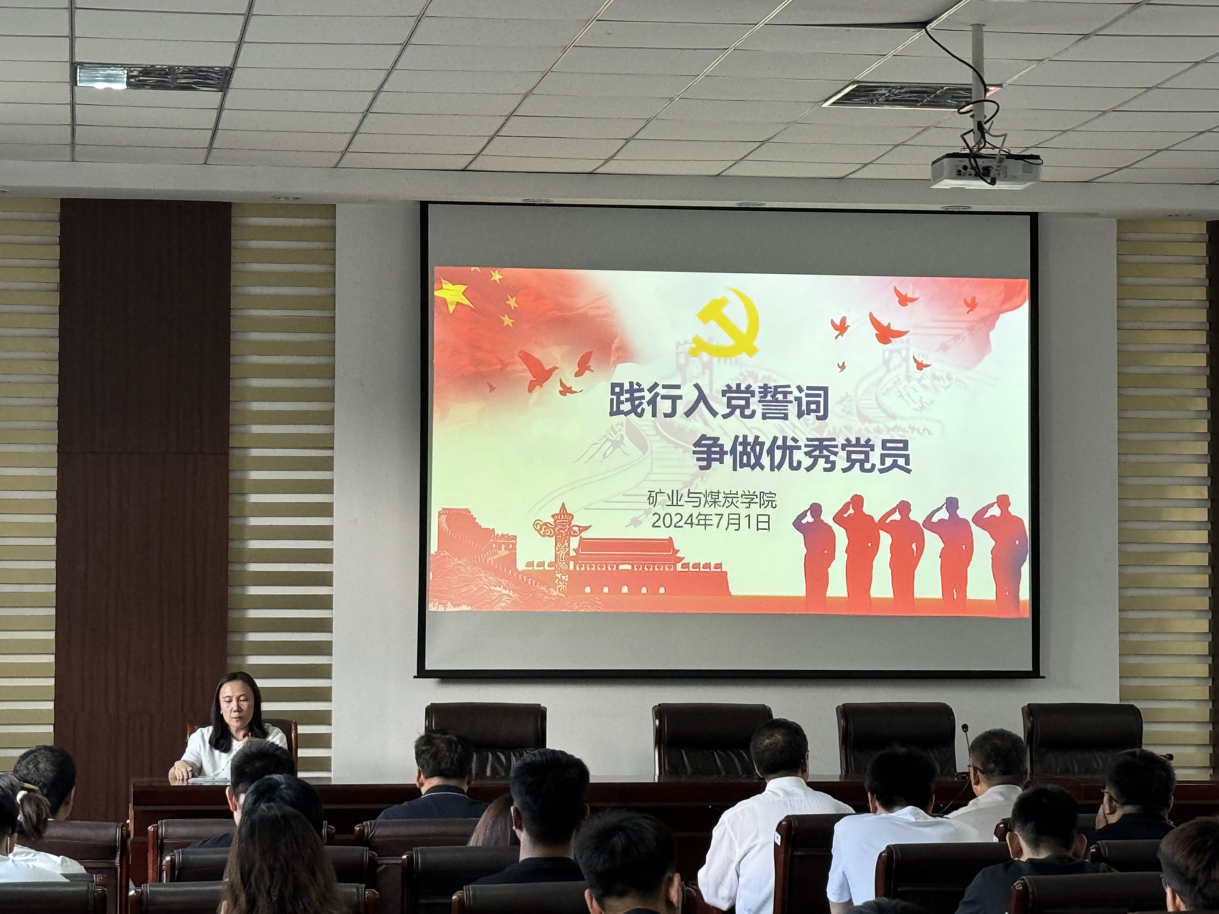 学院党委委员胡显峰带领新党员面向党旗庄严宣誓,其他与会党员重温入党誓词。