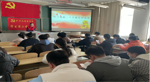 2023年3月2日上午10:30,太阳集团tyc539学生第三党支部在临曦楼209教室组织党员集中学习党的二十大报告和党章,为开好2022年度组织生活会打牢思想基础。领学人:闫妍同志。
