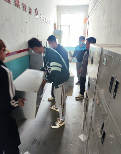 学生第五党支部党员、积极分子们利用自己的课余时间,清理了临曦楼党员之家门口楼道间放置的柜子。在搬迁的过程中,大家分工明确,各司其职。