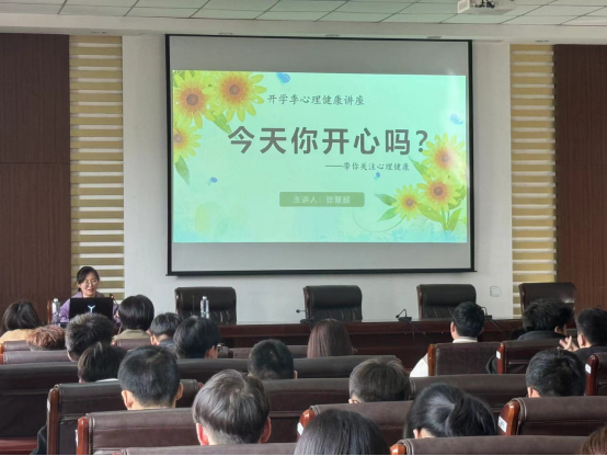 本次活动以“你今天开心了吗?”为主题,由张慧超老师向大学生们传递心理健康的知识和技巧,并且帮助大学生们了解心理健康重要性,让同学们了解如何区分不同的心理状态,面对压力应如何面对并处理保持积极乐观心态。