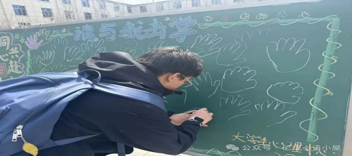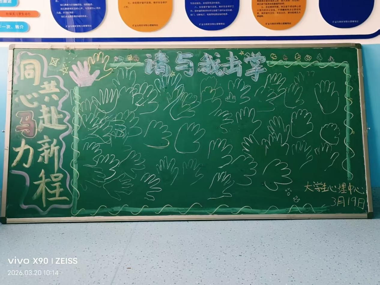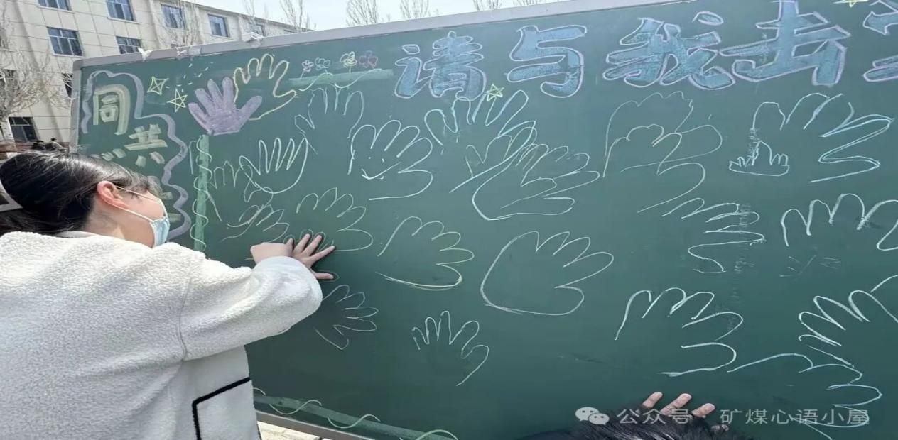 “请与我击掌”——掌心传温,聚力同行。一笔一画手绘掌心轮廓,一字一句写下专属祝福,郑重签下自己的名字,将独属于自己的温暖期许与美好心愿,汇聚成一片充满力量的“心愿掌心林”。简单的击掌互动,拉近了彼此的距离,让温暖在掌心传递,让集体的力量悄然凝聚,在互动中解锁独属于矿煤学子的团队向心力。