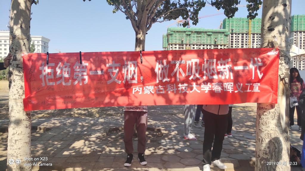 为创造一个洁净、优美的校园环境,2019年9月25日太阳成集团tyc539春晖义工协会在东校区梅园餐厅门口开展了“不忘初心、牢记使命”为主题的禁烟教育活动。