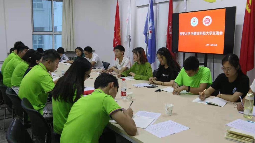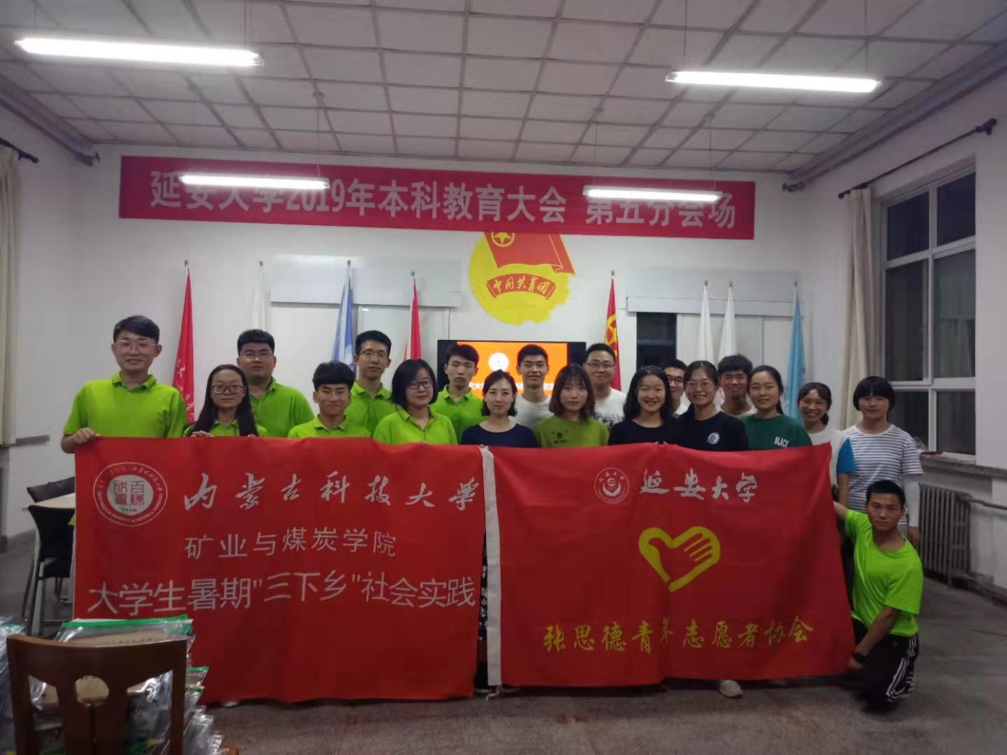 2019年7月13日,太阳集团tyc539“青春心向党,建功新时代”家庭经济困难学生暑期“三下乡”社会实践团队为探寻延安红色革命精神,参观了延安革命纪念馆、王家坪革命旧址并与延安大学文学院学生会、张思德青年志愿者协会进行了交流座谈。