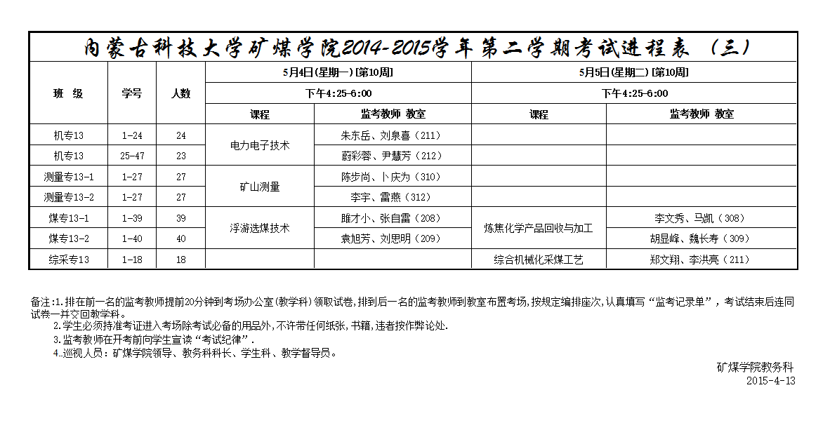 矿煤学院(高职)14-15(2)春学期考试进程表(三)